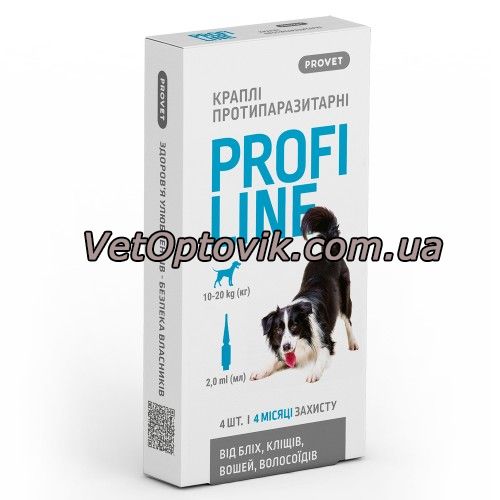Капли Provet Profiline для собак 10-20 кг, 4 пипетки по 2,0 мл (инсектоакарицид) купить в Украине